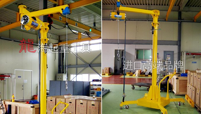 移動式懸臂吊可折疊可旋轉,采用360°全回轉設計,帶輪子可隨意移動位置,可直接固定在機器旁、占地面積小,適用于空間狹小場合。